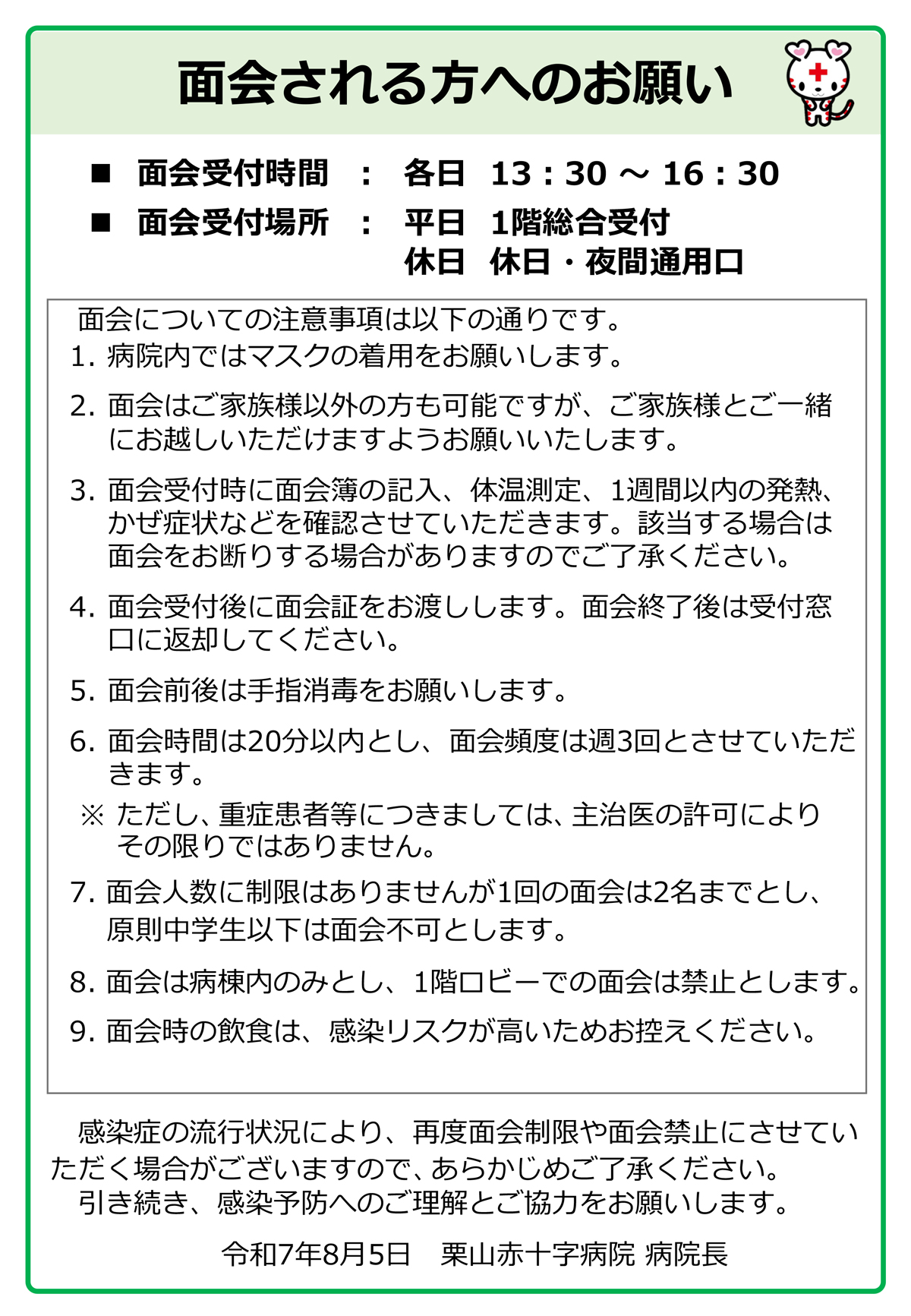 平素より栗山赤十字病院に多分なご支援とご理解をいただき、深くお礼申し上げます。さて、このたび当院は、長年の懸案でありました病院改築が完了し、11月4日より新しい病院での診療が開始となりました。