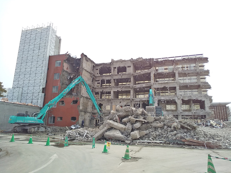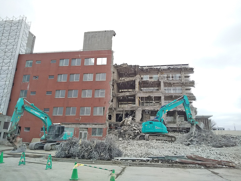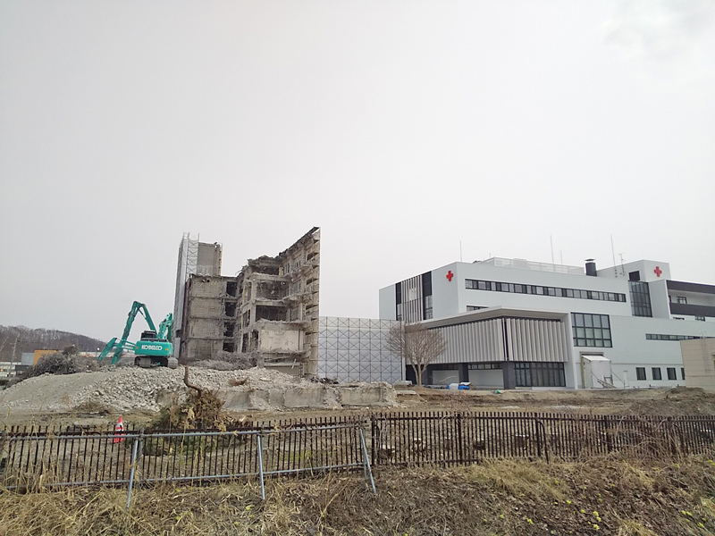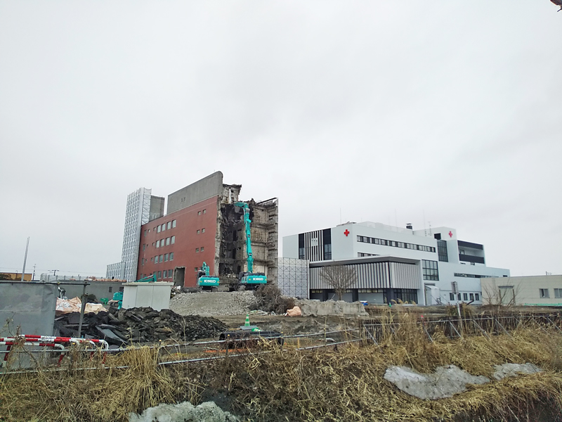 旧病院本館の解体が着々と進み、旧正面玄関がなくなりました。